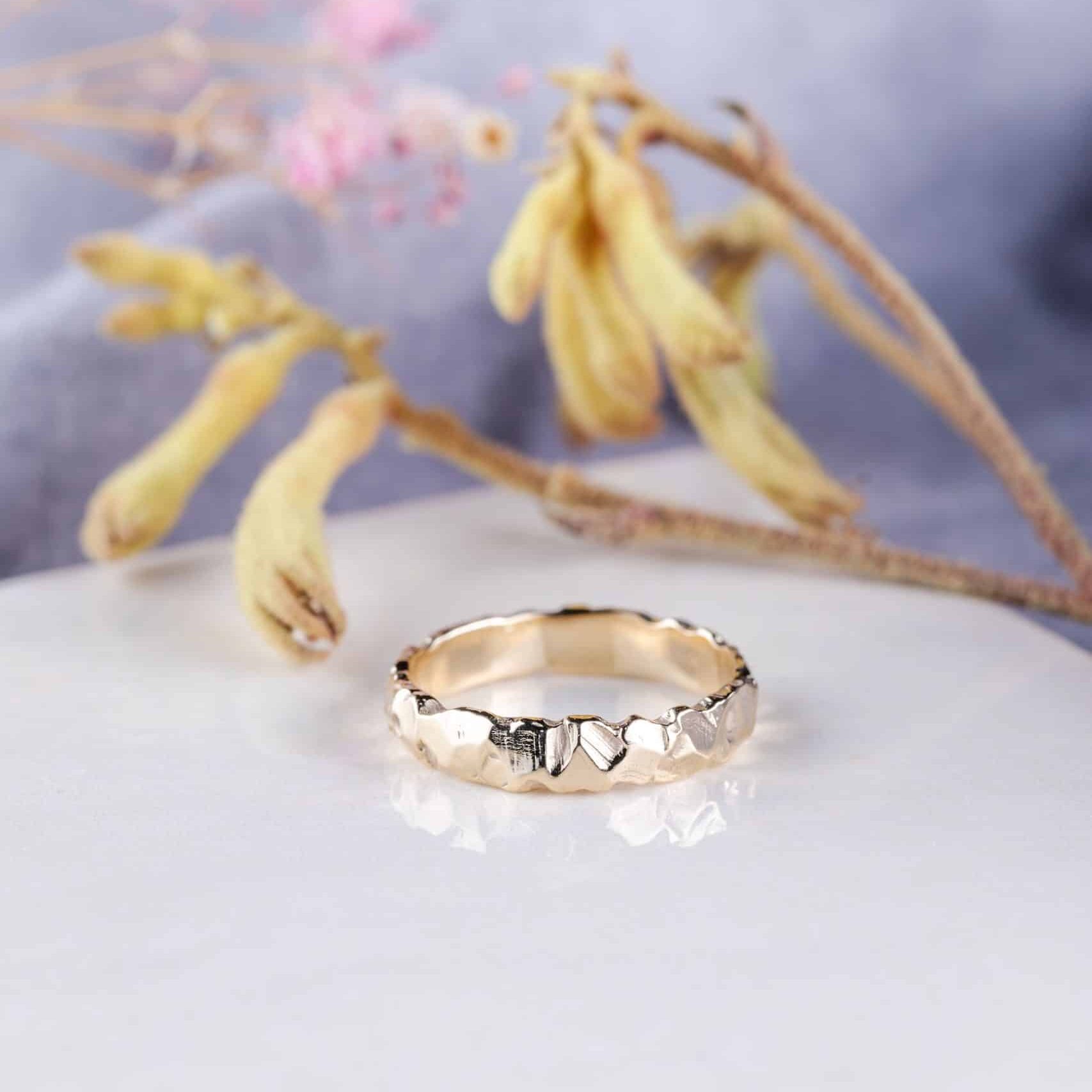 De uniek structuur van deze ring is geïnspireerd op te ruwe schoonheid van de natuur. Deze rotsachtige 14 karaats gouden ring is stoer en elegant. Beschikbaar in geelgoud, witgoud en roodgoud en kan uitgebreid worden met een mooie steen