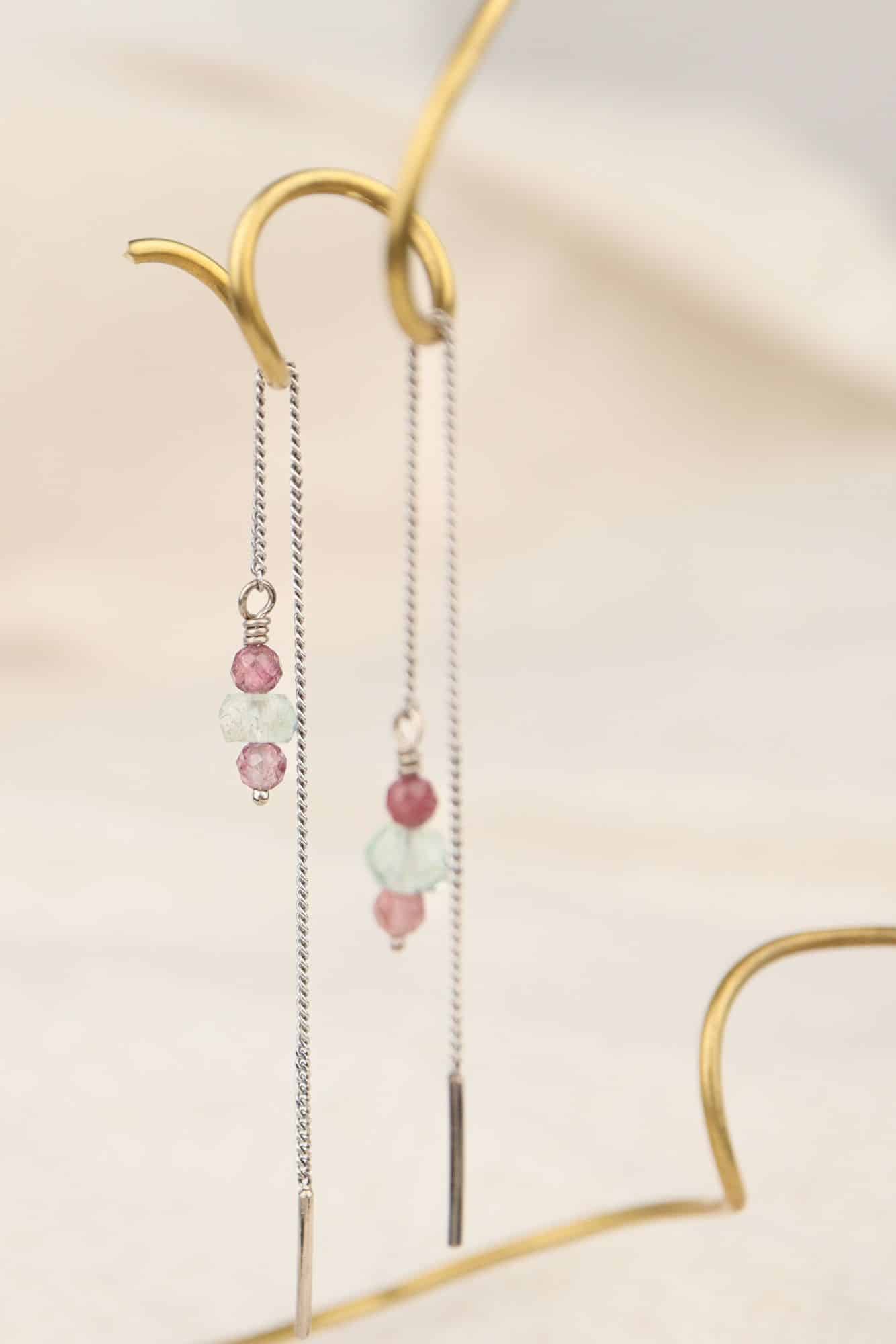 Witgouden oorhangers met natuurlijke edelsteentjes.